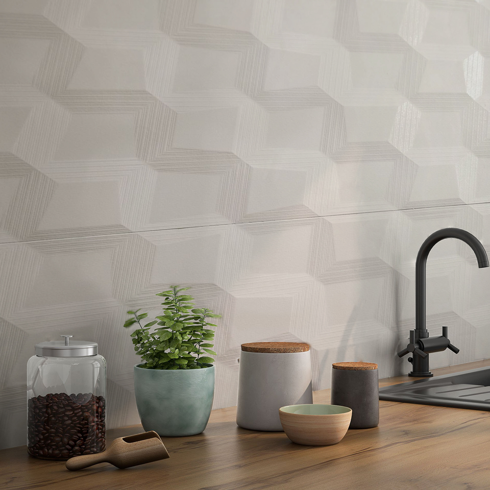 Introducing Brilliant Sector, a stunning collection of ceramic wall tiles, a testament to the meticulous craftsmanship of Spanish Artisanos and proudly made in Spain. These exquisite 3-dimensional tiles are designed to shine as feature walls, drawing the eye with their unique square geometric pattern. Available in both a classic white and a bold black, Brilliant Sector makes a dramatic statement in any space. These tiles possess a transformative quality, adapting to their surroundings, infusing your walls with a dynamic and ever-changing allure. Immerse yourself in Spanish craftsmanship with Brilliant Sector, where every wall becomes a canvas for a captivating, dynamic work of art.